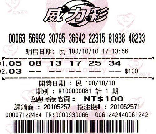 於是我手癢再度使用 數字產生機技術 來測了一下本期的威力彩號碼,然後買了一張彩票,如下所示 (是十月十日開獎的,也是十月十日當天買的哦):